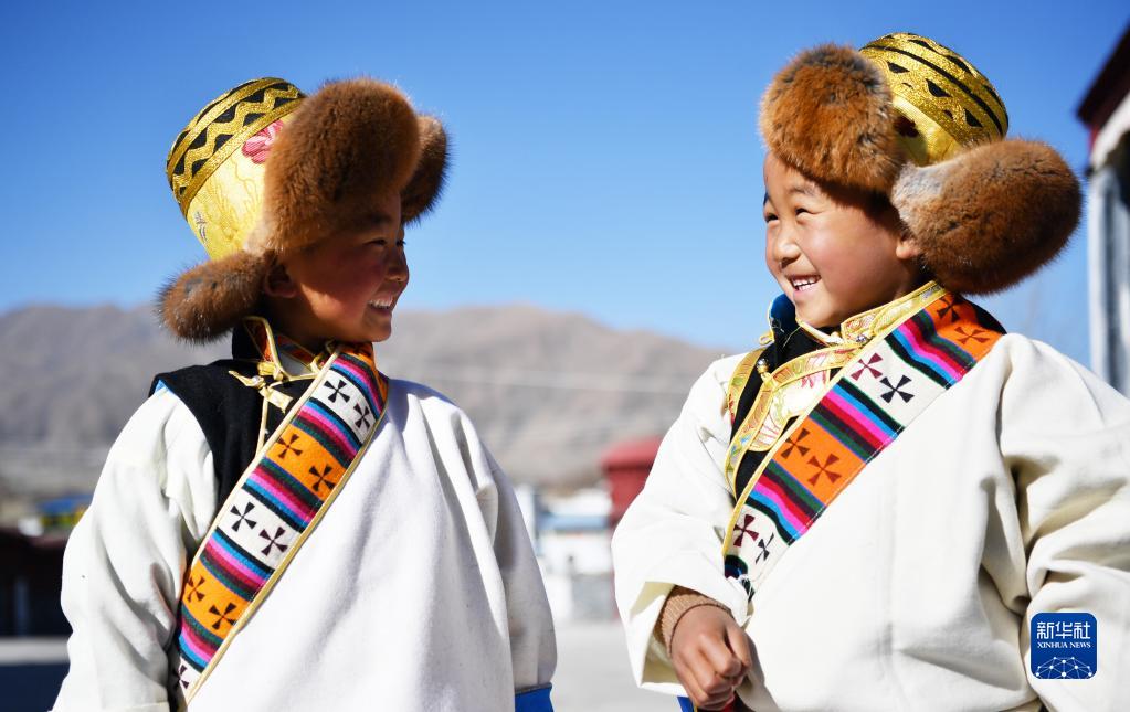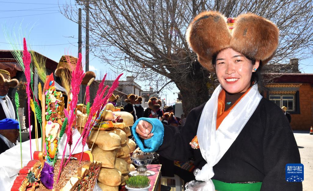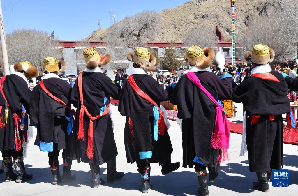 3月3日,西藏山南市貢嘎縣崗堆鎮群眾身著藏裝歡度藏歷水虎新年。新華社記者 覺果 攝