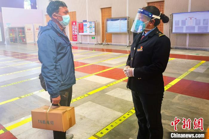 圖為羅布在林芝火車站引導(dǎo)乘客。國(guó)鐵青藏集團(tuán)有限公司 供圖