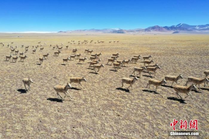 近日,西藏阿里地區改則縣境內出現近萬頭藏羚羊聚集現象。“中國邊境野生生物衛士”榮譽稱號獲得者強巴次仁向中新社記者介紹,這與保護成效、生態向好、棲息地安全等分不開。