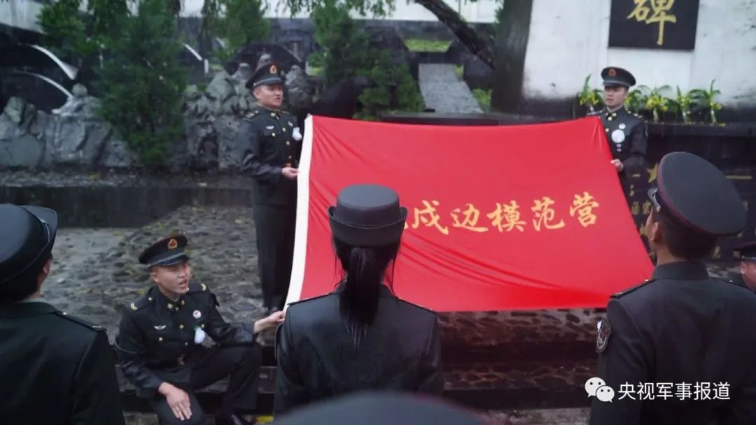 ▲綿綿細雨中,西藏軍區“墨脫戍邊模范營”在駐地烈士陵園,現地展開黨史學習教育,官兵們認真聆聽英烈故事,汲取奮進的動力。