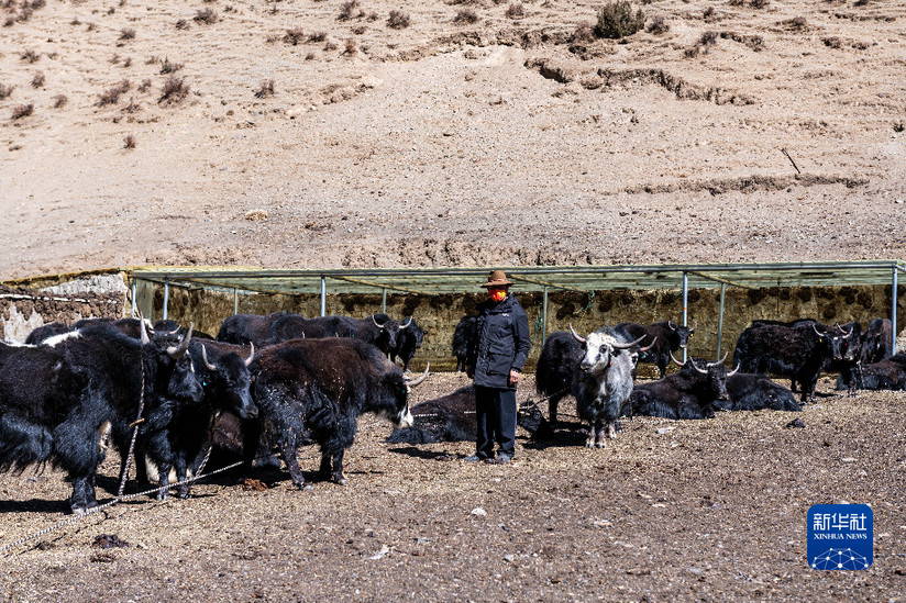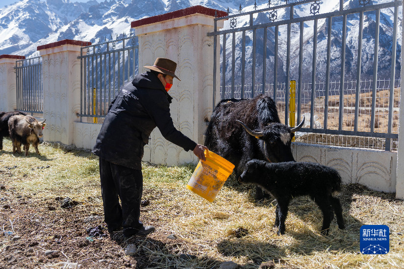 貢培在西藏娘亞牦牛養殖產業發展有限責任公司的養殖場工作(3月30日攝)。新華社記者 周荻瀟 攝