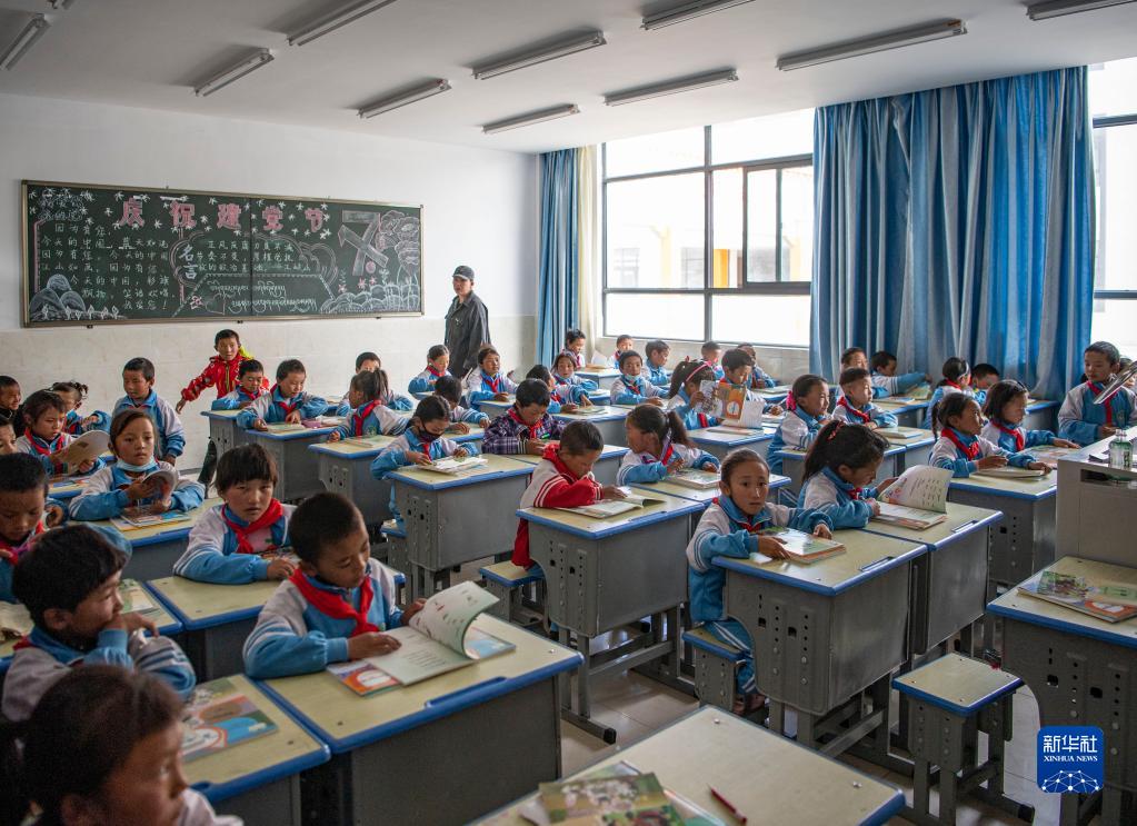 在森布日幸福家園九年一貫制學校的教室里,學生們在上自習(資料圖)。新華社記者孫非攝