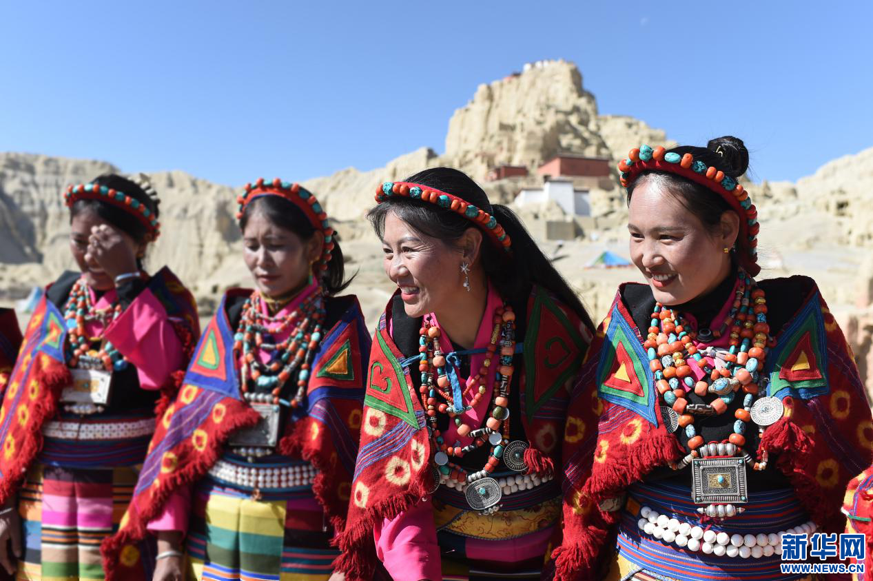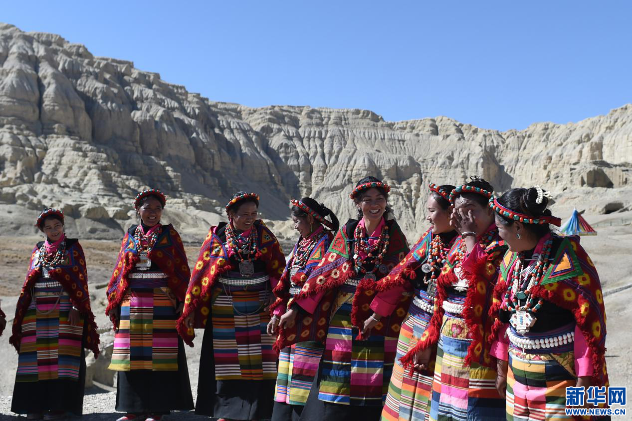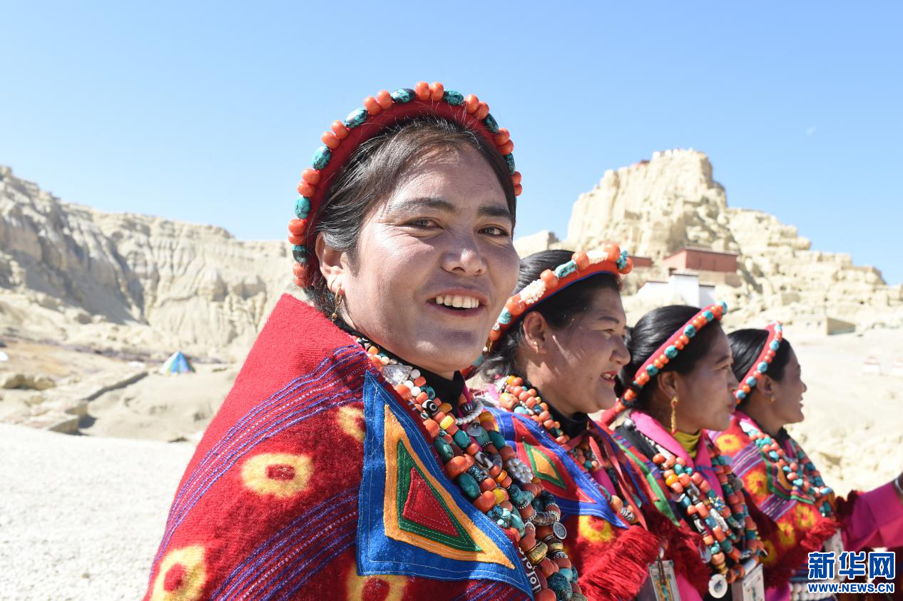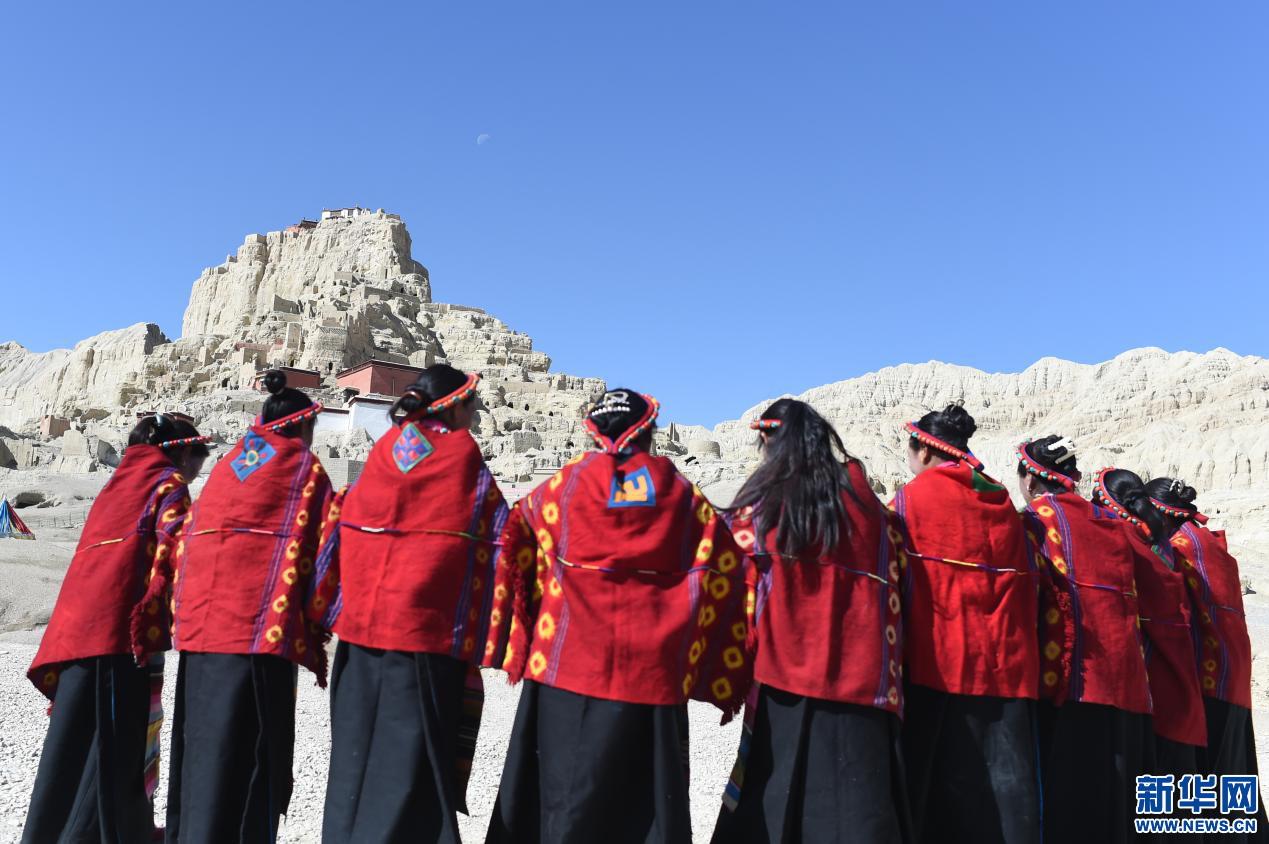圖為當地群眾在古格王朝遺址腳下準備表演宣舞(4月23日攝)。新華網 旦增努布攝