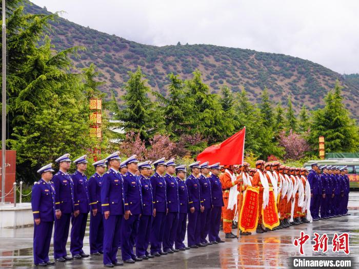 林芝市森林消防支隊(duì)營(yíng)區(qū)人員列隊(duì)歡迎駐防分隊(duì)歸來。李國(guó)燾 攝
