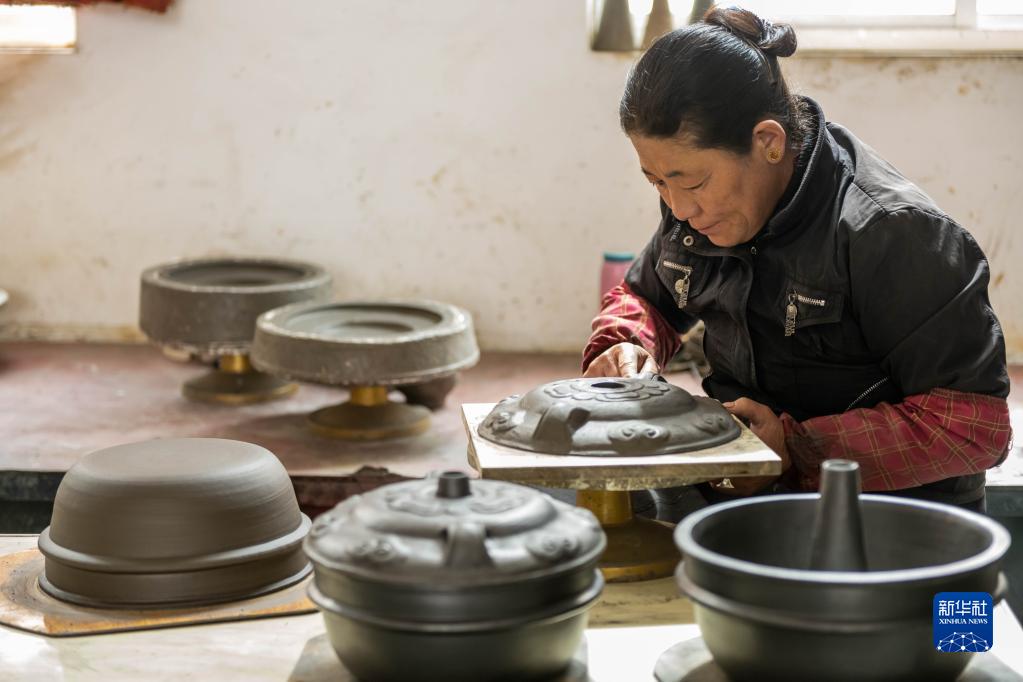 這是在昌都市察雅縣的產業車間加工完成的器皿(4月8日攝)。新華社記者 周荻瀟 攝