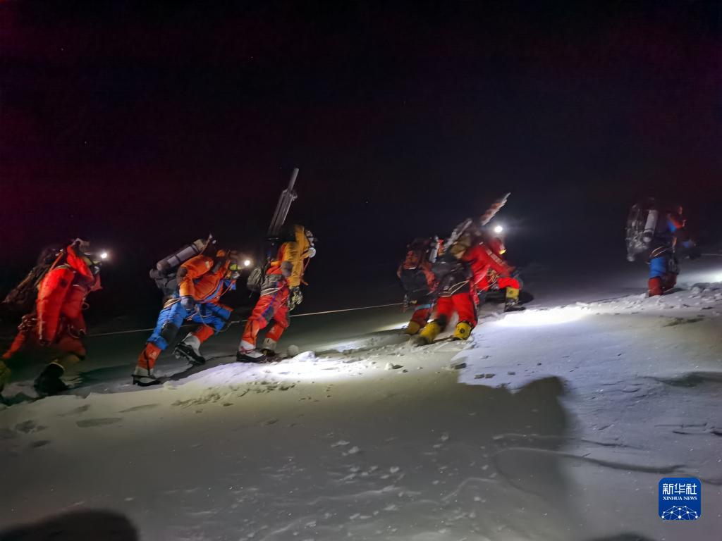 5月4日凌晨,珠峰科考隊員從突擊營地出發,向珠穆朗瑪峰頂發起沖刺。新華社特約記者 索朗多吉 攝