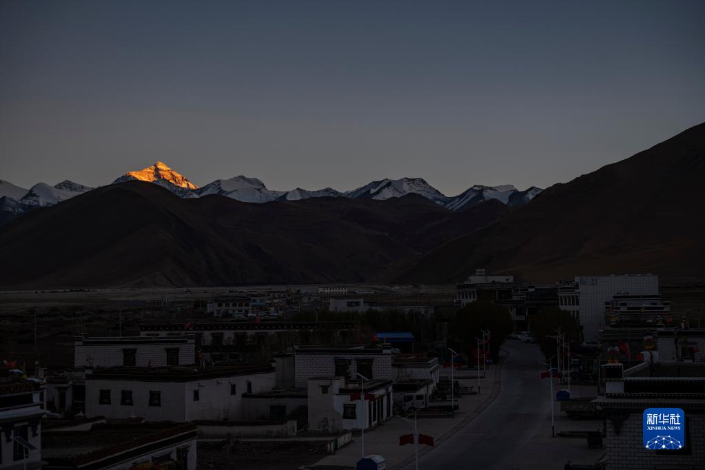 落日余暉灑在珠峰上,扎西宗鄉慢慢沉睡(5月10日攝)。新華社記者 孫非 攝