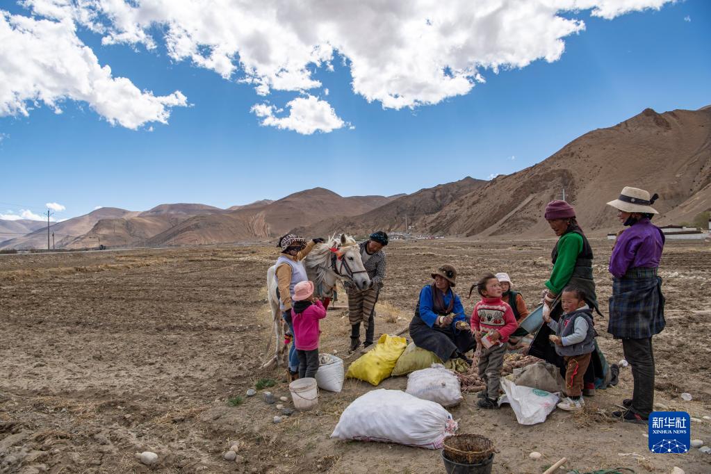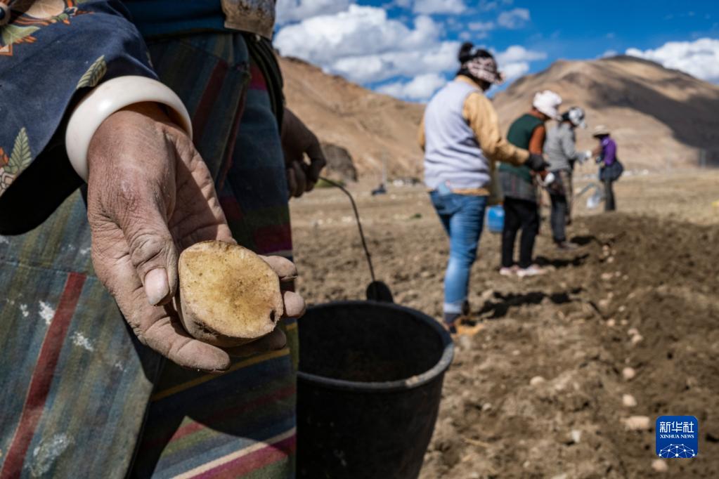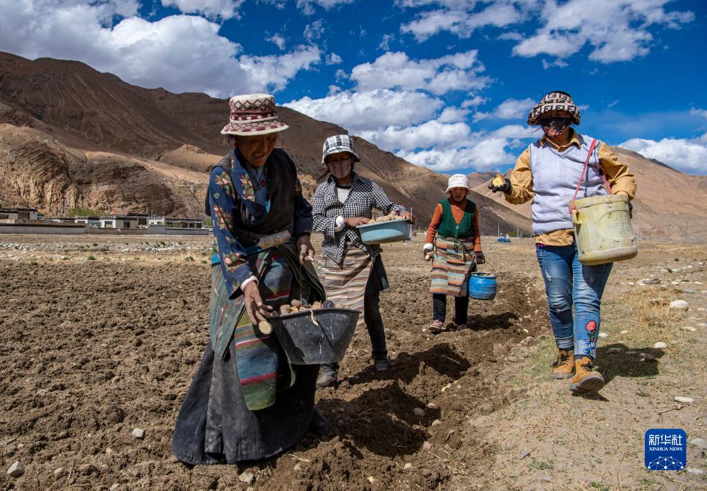 西藏定日縣扎西宗鄉日白拉新村的村民在播種土豆(5月10日攝)。新華社記者 孫非 攝