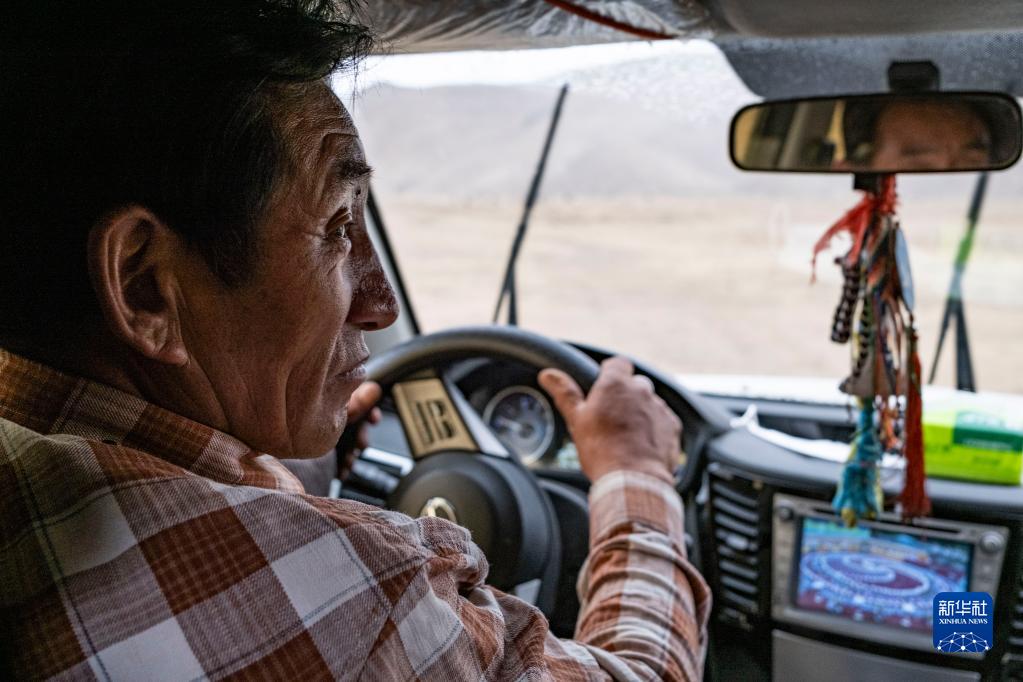 裝著放映設備,羅珠開車前往鄰近的巴靈村(5月20日攝)。新華社記者 晉美多吉 攝