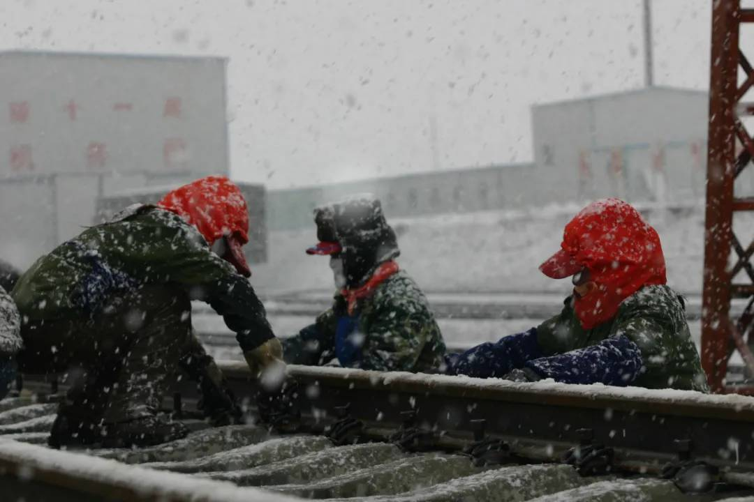 姑娘們頂風(fēng)冒雪生產(chǎn)軌排。