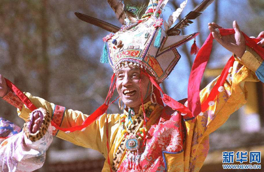 藏族藝術家土登說唱《格薩爾》史詩。新華社記者 覺果 攝(1997年11月28日發)