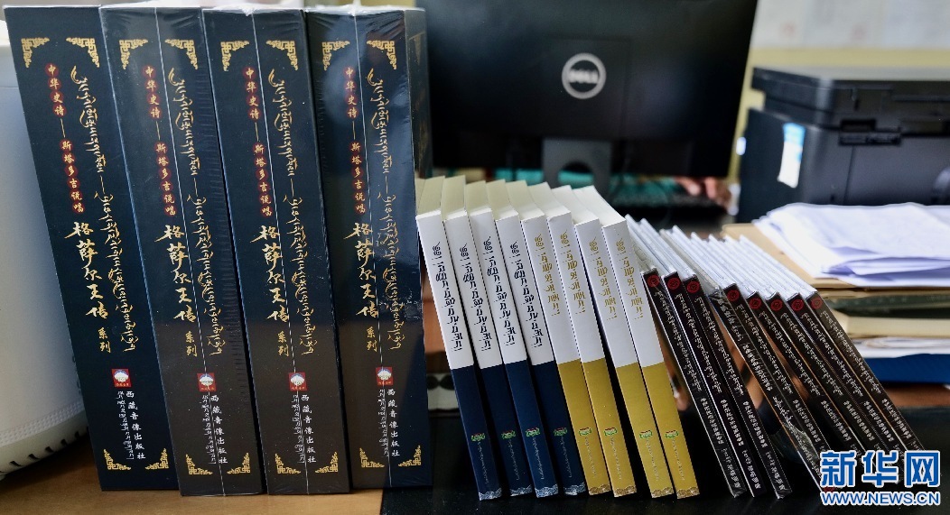 2022年5月30日,圖為已出版的斯塔多吉說唱的《格薩爾王傳》系列。新華網 柑丹鴦琦 攝