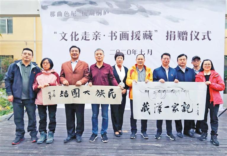 圖為2020年7月,那曲市色尼區“文化走親·書畫援藏”捐贈儀式(資料圖片)。 記者 謝偉 攝