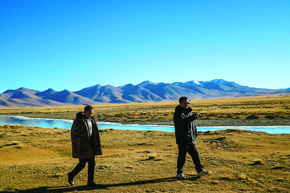 王軍強(右)在巴扎鄉(xiāng)查藏藏布巡河。 (受訪單位供圖)