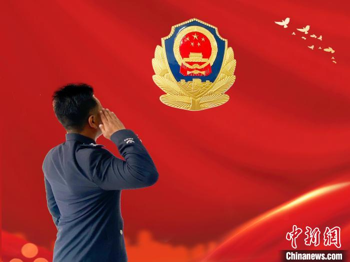 圖為尼瑪扎西向警徽敬禮。 日喀則市公安局禁毒支隊(duì)供圖