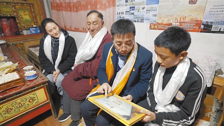 沈陽市第九批援藏工作組副領(lǐng)隊(duì)、安多縣常務(wù)副縣長裴德本來到資助的貧困中學(xué)生古扎多吉家中家訪。