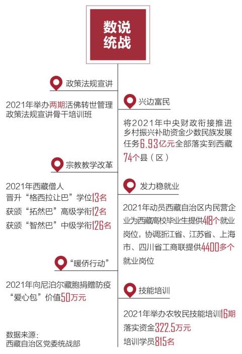 2021年,西藏統戰系統廣泛宣傳活佛轉世政策法規,深入開展反分裂斗爭,牢牢掌握反分裂斗爭全局主動性,統戰民族宗教領域保持了持續和諧穩定。