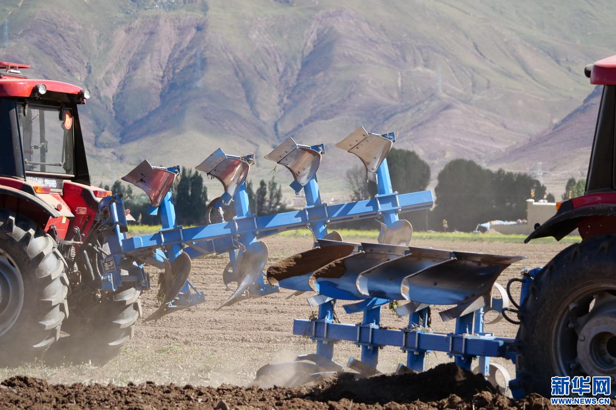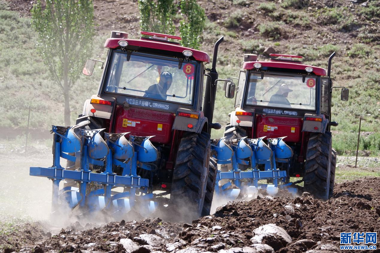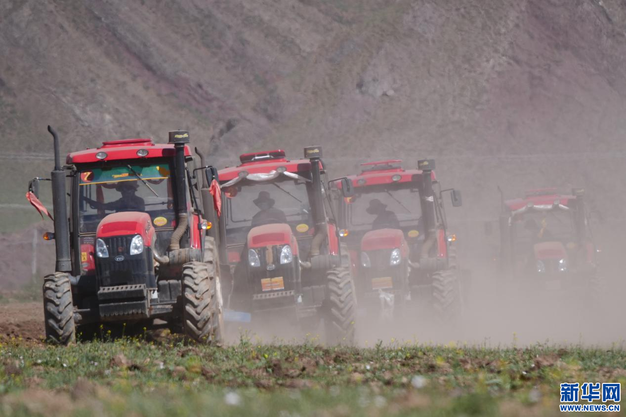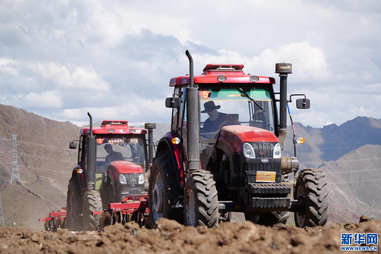 6月20日,甘曲鎮江角村農機合作社的農機在進行播種。新華網 旦增努布 攝