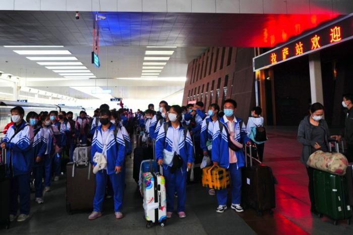 2020年7月,遼寧省遼陽市第一中學西藏班的126名藏族學生順利完成初中課程,返回西藏家鄉參加內地西藏班中考,準備開始新的學習和生活。 中新社記者 張偉 攝