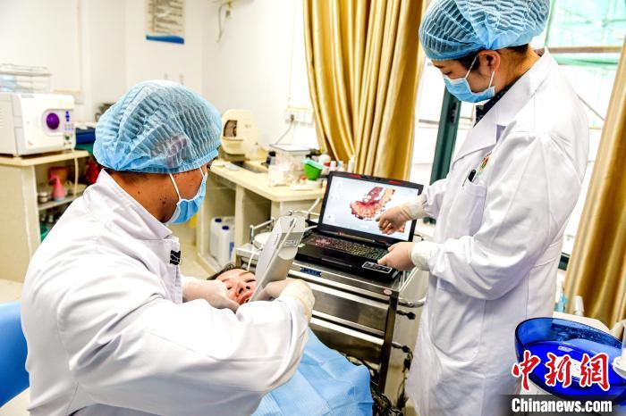 圖為醫(yī)生正在對患者進行口內(nèi)掃描采集數(shù)據(jù)。彭毅 攝