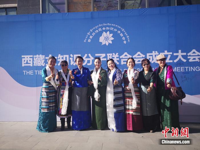 2019年,邊巴拉姆(左三)參與成立西藏自治區女知識分子聯合會,并擔任首任會長。受訪者供圖