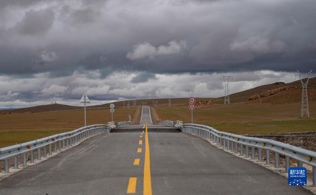 這是雙湖縣境內的公路和電網(7月14日攝)。新華社記者 晉美多吉 攝