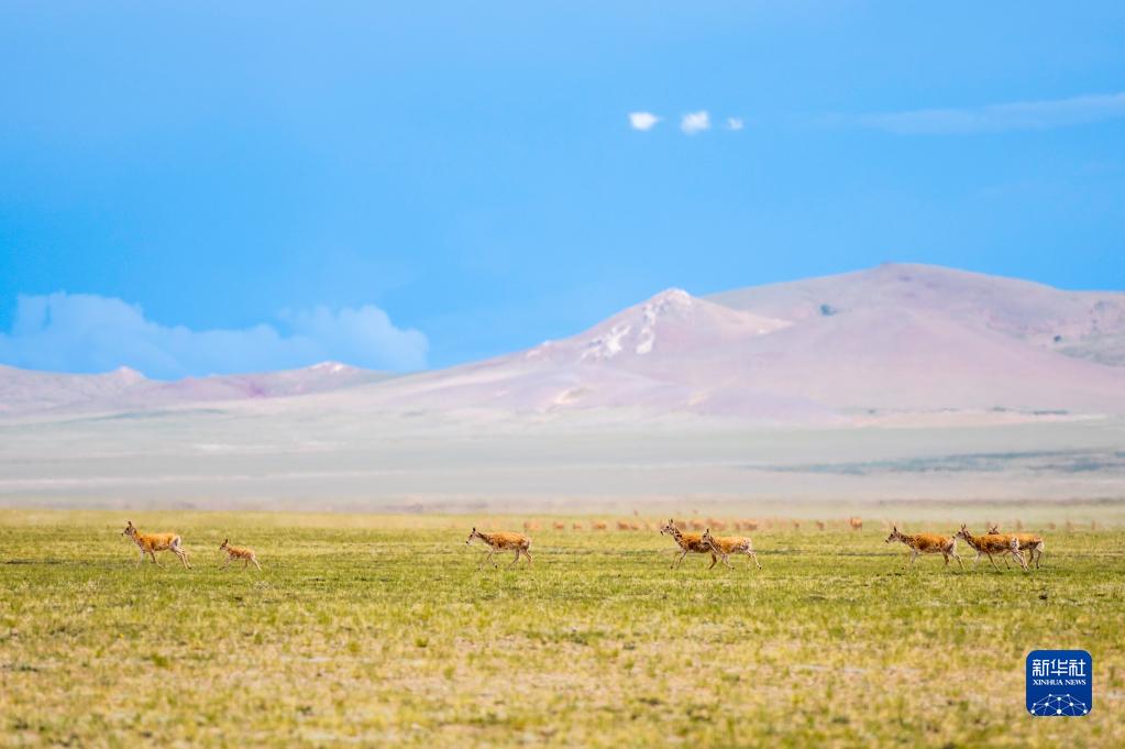 在雙湖縣境內拍攝的藏羚羊(7月11日攝)。新華社記者 周荻瀟 攝