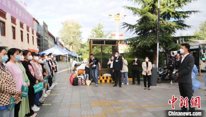 圖為西藏阜康醫院醫務人員整裝出發,分赴抗疫一線。阜康醫院供圖