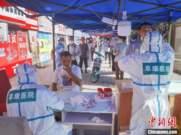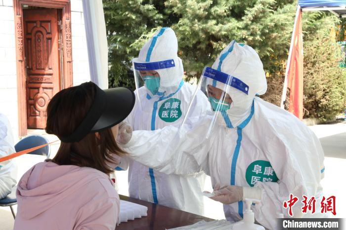 圖為西藏阜康醫院醫務人員在社區進行核酸采樣。阜康醫院供圖