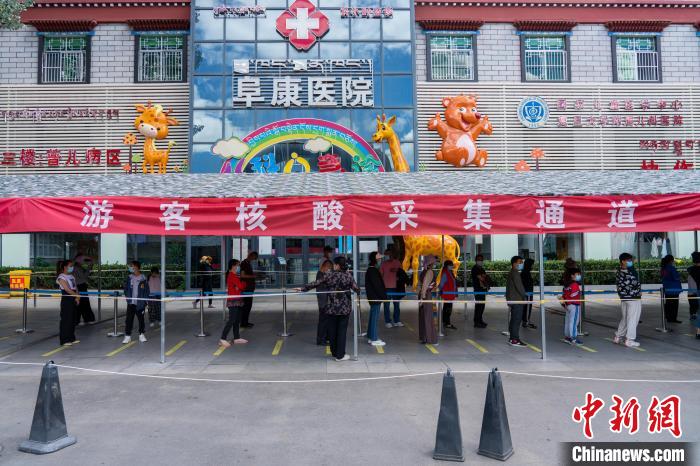 圖為西藏阜康醫院門口開通的游客核酸采樣綠色通道。江飛波 攝