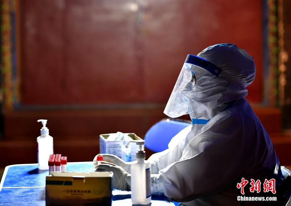 8月14日,西藏拉薩八廓街的一處核酸檢測點。當日,拉薩市應對新冠肺炎疫情工作領導小組決定,至8月15日凌晨3時的拉薩主城區消殺管理時間,再延長三天至8月18日凌晨3時,在拉薩主城區以社區網格為基本單位,快速精準開展多輪全員核酸篩查。 中新社記者 李林 攝