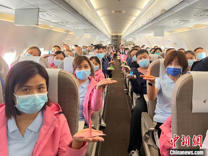 東航機組制作了寓意“美好、希望、祝福”的千紙鶴送給援藏醫(yī)護隊員,希望醫(yī)護隊員們平平安安歸來,祝福自治區(qū)各族同胞早日戰(zhàn)勝疫情。