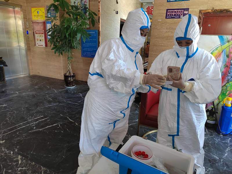 很快她們的申請有了回應,兩位老黨員變身“大白”,走上了核酸檢測崗位。從上午9點開始,上門為隔離人員進行核酸采樣。一直到夜里11點才回家,卸下“大白”防護服時渾身已濕透。“能參與到疫情防控志愿服務中,做點力所能及的事兒,是我的義務。”旺前卓瑪說。