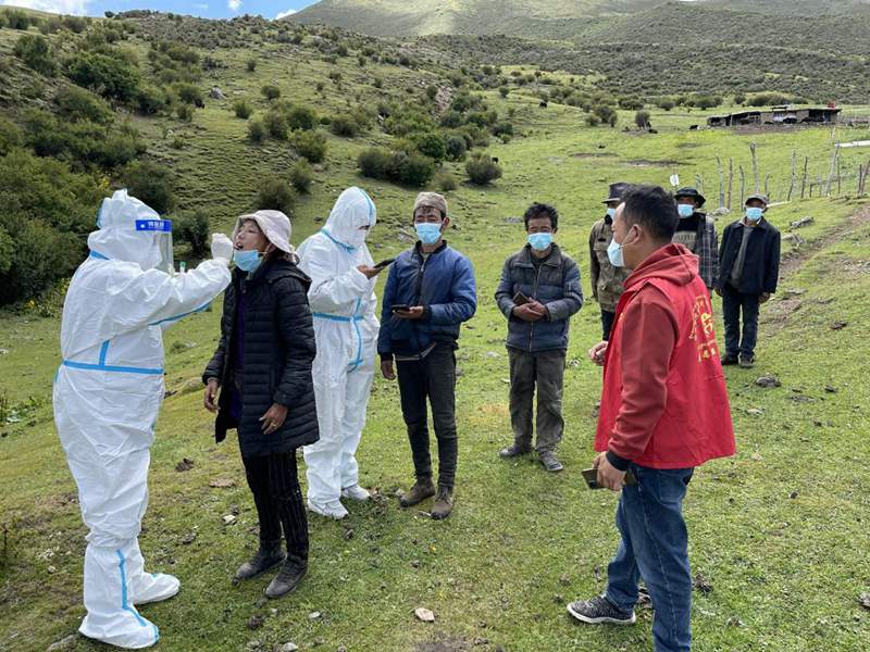 林芝市朗縣防疫人員到牧區進行核酸采樣工作。圖片由林芝市文明辦提供