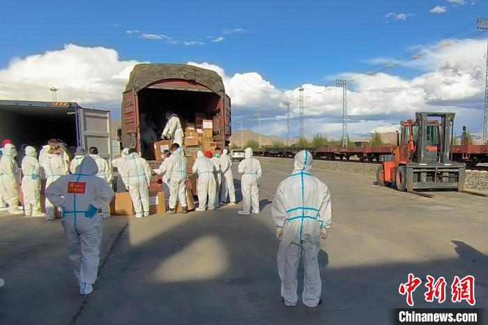 上海援藏防疫物資抵達(dá)日喀則。 國(guó)鐵青藏集團(tuán)有限公司拉薩車務(wù)段 供圖