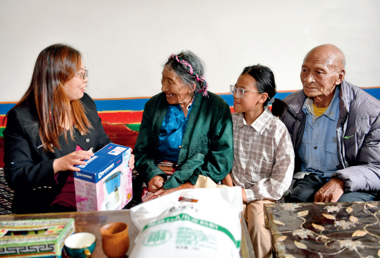 入戶走訪的過程中,王玉秀收獲了許多藏族老百姓的信任和喜愛。援藏結束前,她專門去看望在日喀則市謝通門縣初村結識的次仁和格桑桑珠,還為他們留下生活用品和現金。臨別時,次仁感動地說:“能有這么一位‘親戚’,我們真的很高興。”