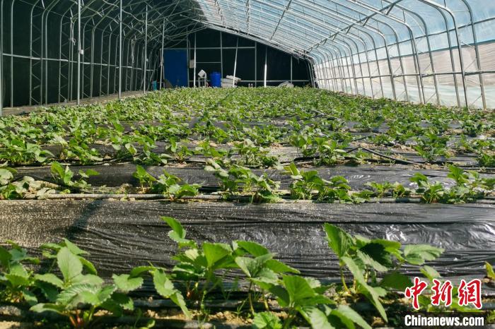 西藏康馬縣高原溫室大棚里的草莓,預(yù)計10月可采摘。 受訪者供圖