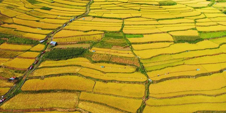 “截至9月22日,日喀則全市已收割農作物89萬畝,占農作物總播種面積的63%以上,秋收整體進度與往年基本一致。”日喀則市政府副秘書長扎西桑旦說。