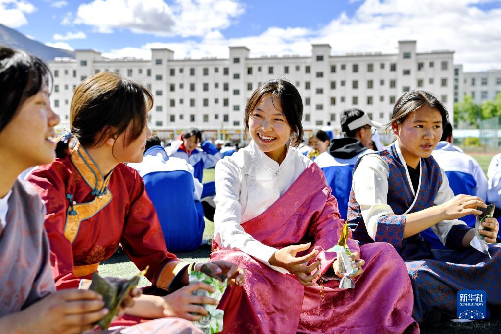 西藏山南市第二高級中學的學生在學校過端午節(2022年6月3日攝)。新華社記者 張汝鋒 攝