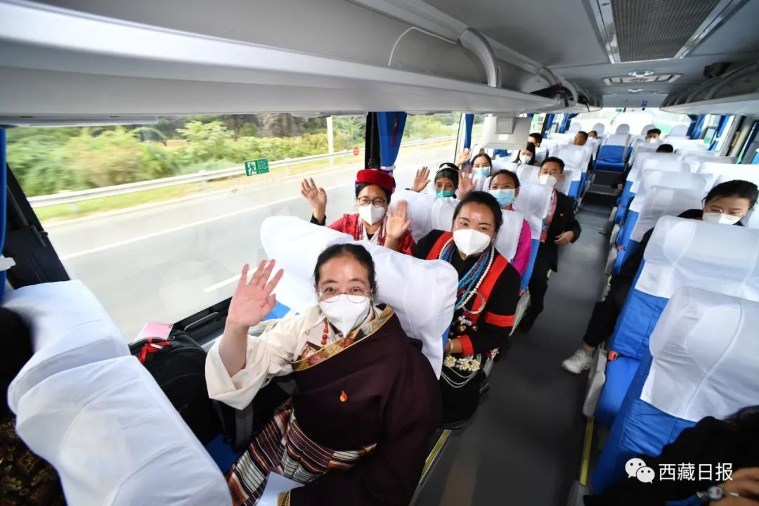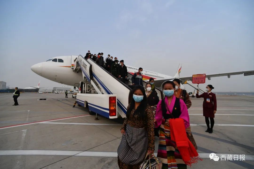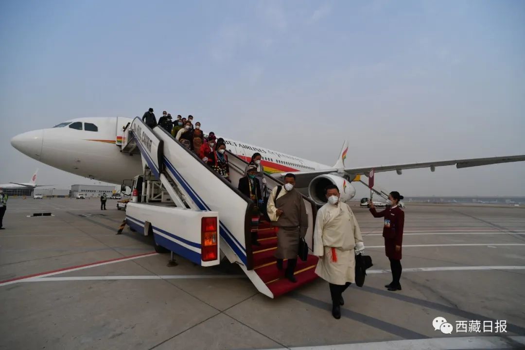 今天下午,西藏自治區出席黨的二十大代表乘機抵達北京,向大會報到。