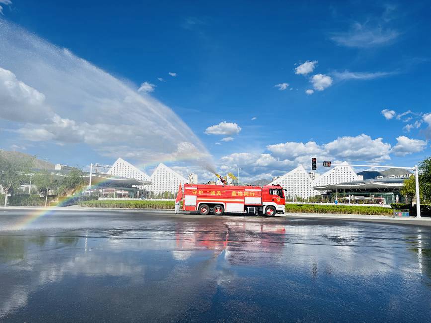 2022年8月13日,一條《彩虹下的心愿,愿疫情早日退去》的視頻刷爆拉薩市民的朋友圈,視頻中消防指戰(zhàn)員化身“大白”,逆行而上,在拉薩主城區(qū)以社區(qū)網(wǎng)格為基本單位開(kāi)展消殺。當(dāng)天,消防車30輛、指戰(zhàn)員146人集體出動(dòng),噴灑而出的消毒液在陽(yáng)光下形成了一道道彩虹。