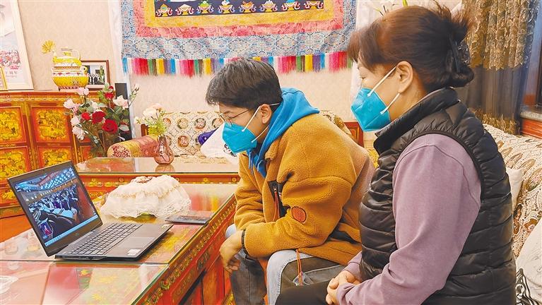 圖為國家電網西藏電力有限公司經濟技術研究院職工和家屬在收聽收看黨的二十大開幕盛況。本報記者 拉巴桑姆 通訊員 鄭佳紅 攝
