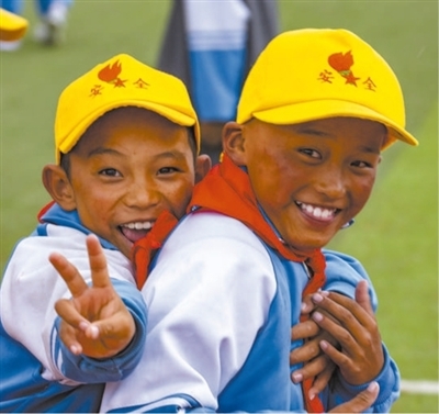 西藏自治區山南市貢嘎縣森布日小學,孩子們在操場上嬉戲。