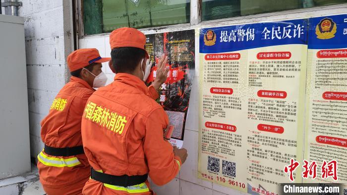 消防隊員正在張貼標(biāo)語。 袁永斌 攝