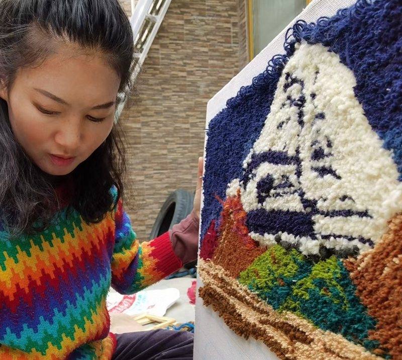 2019年,帶著滿腔熱血,次仁曲珍回到家鄉(xiāng)山南市措美縣波嘎村開辦婦女編織坊。“招募的都是當(dāng)?shù)鼐幙椥∧苁郑齻兌加幸粋€共同的身份——家庭婦女。雖然時代的包容性越來越大,但是我知道,在相對落后的地方,她們想要成就一番事業(yè)要比其他人困難。以前我和她們一樣,圍著灶臺、家人、農(nóng)田轉(zhuǎn),沒有經(jīng)濟(jì)收入,從某種意義上來說,是不獨(dú)立的。所以,我想給她們一個機(jī)會和更多的可能。”