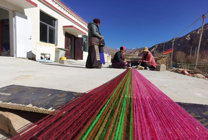 除了賣產(chǎn)品,次仁曲珍也心系十里八村的其他群眾。“我們的原材料(羊毛、羊絨),都是從周邊村子收購的。其實(shí),以前很多老百姓家的羊毛要么自用,要么送人,幾乎很少出售。現(xiàn)在他們可以送到我這里,市場價(jià)7元—10元/斤。”古老的紡織技藝與珍稀羊毛(絨)材質(zhì)融合,是每一位阿佳用心編織的直抵人們內(nèi)心深處的柔軟,更是她們的五彩夢想。