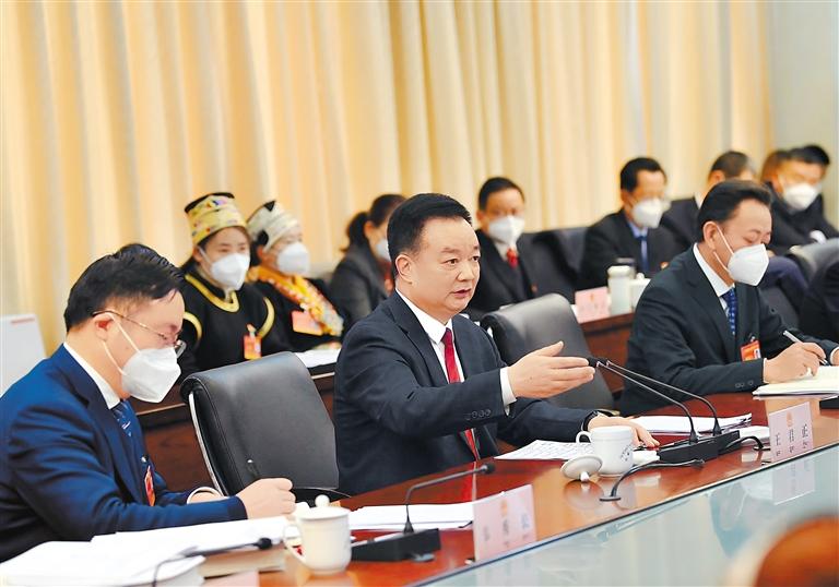 林芝代表團審議熱烈、氣氛活躍,代表們爭相發言。敖劉全、洛央、楊力、顏世輝、玉珍圍繞美麗鄉村建設、建強基層黨組織、延伸旅游景區服務保障、打造文旅強縣、健全森林防火體制機制、僜人新生活等暢談發展變化。王君正邊聽邊記,積極回應。指出,代表們深入群眾、聯系群眾,充分反映群眾意愿,提出的意見建議很有針對性,有關部門要認真梳理研究,轉化為具體支持舉措。他說,人大常委會工作報告、政府工作報告和人民法院工作報告、人民檢察院工作報告,總結成績實事求是、分析問題客觀透徹、謀劃目標切實可行、部署工作扎實有力,必將進一步激勵全區上下奮進新征程、建功新時代。我完全贊同。