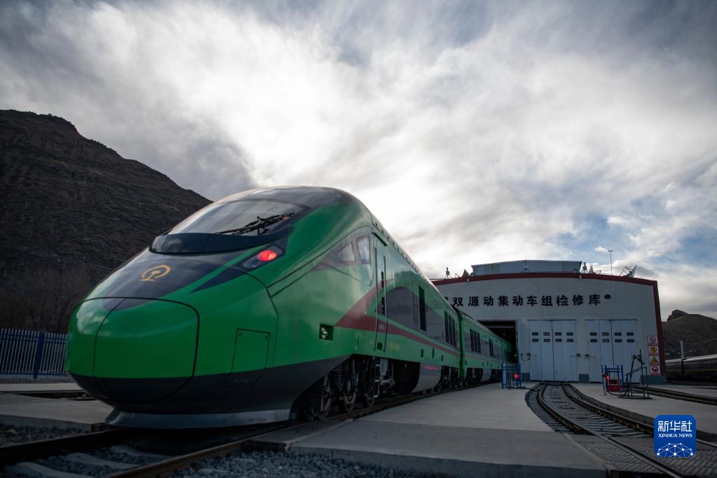在拉薩機輛整備中心,動車組在檢修庫進行整備作業(1月10日攝)。新華社記者 孫非 攝