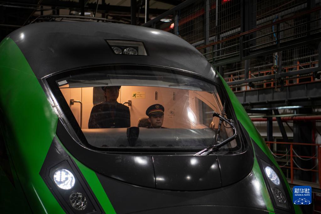 在拉薩機輛整備中心,黃起崗將動車組駛入停車位置(1月11日攝)。新華社記者 孫非 攝