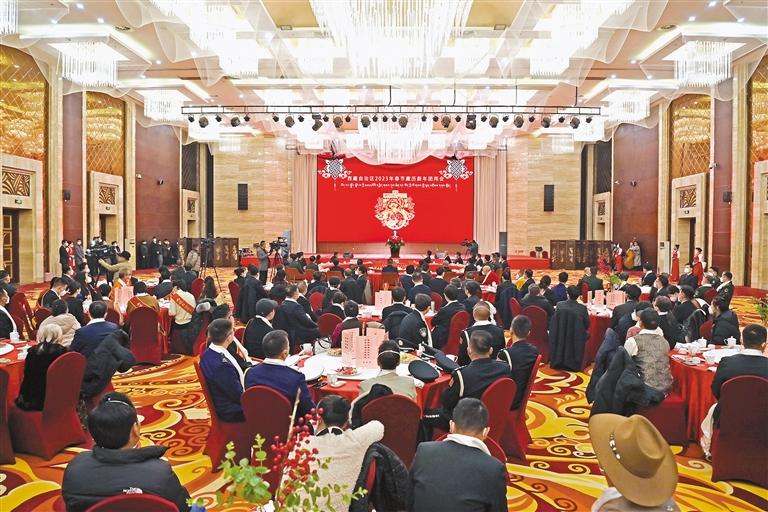 雪域高原春暉漸,西藏大地萬象新。在春節、藏歷新年即將到來之際,西藏自治區2023年春節、藏歷新年團拜會17日下午在拉薩舉行,西藏自治區黨政軍領導與各族各界人士歡聚一堂,互獻哈達、互致祝福,共敘友情、共謀發展。